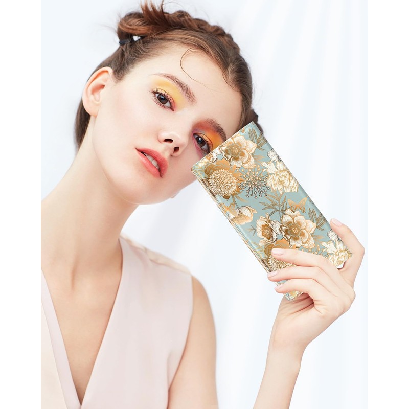 Nipichsha Womens Wallet, RFID Slim Wallets for Women, Thin Ladies Credit Card Holder Purse, Cute Leather Bifold Clutch Billfold with 11 Card Slots & ID Window, Blooming Flowers