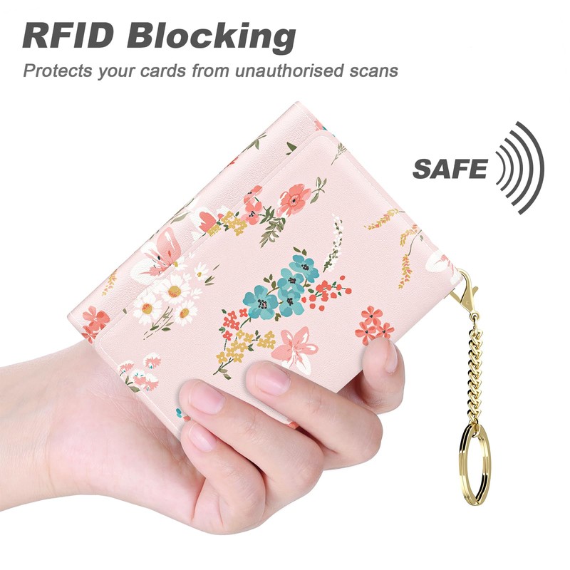 - 【Slim & Compact Size】This mini wallet for women measures 4.25 x 3.35 x 0.7 inch, only 1.8 oz weight, slim, lightweight and does not take space. It is easy to carry by slipping into your front pocket or travel bag. Comes with a extra keyring, works great on a lanyard or bracelet keychain.