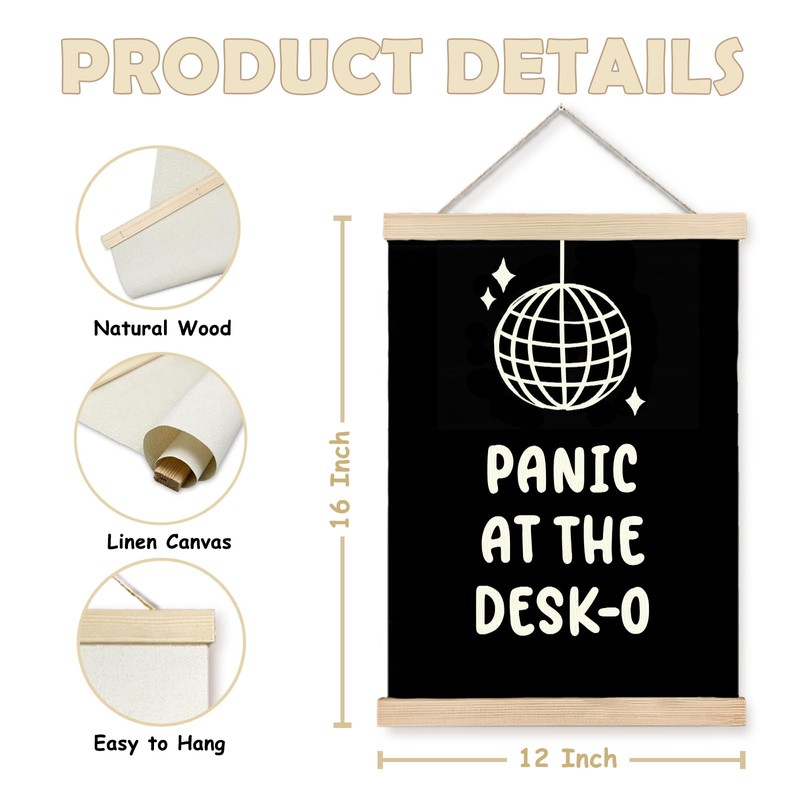 Nipil Funny Office Poster Hanger Frame, Panic at the Desk-O Sarcastic Mental Health Hanging Canvas Framed Wall Art Decor for Office Workplace Home, 12x16 Inch