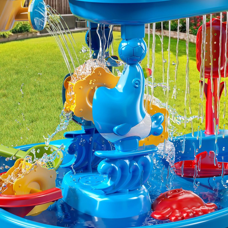- Multiple Ways to Play - Toddlers sand water table bring children different play experiences, watering, experiencing waterfalls; use molds to suppress vivid animals and more, put water, sand, snow, soil, or anything they can think of to play and build a mini water park in your backyard/beach/seaside for endless fun!