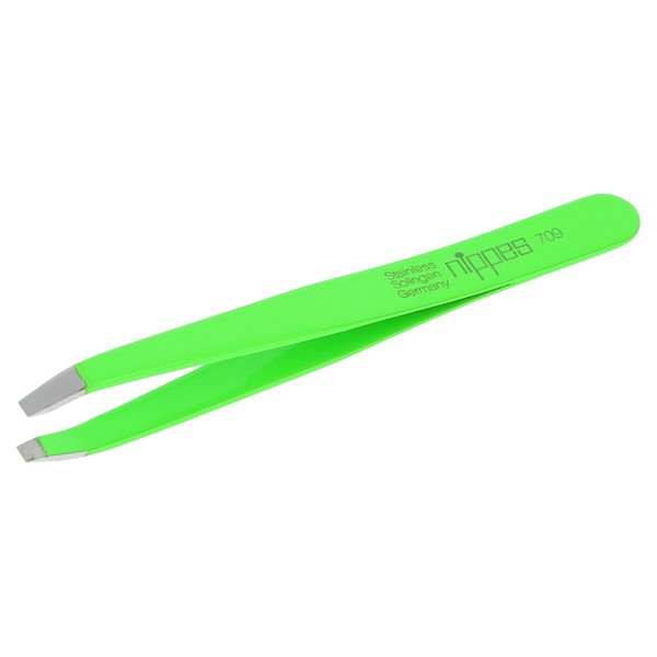 Nippes Solingen 709 Tweezers with Slanted Tip, Stainless Steel, Green, 9.5 cm Length, Tweezers Eyebrow Plucking, Tweezers Pointed, for Precise Hair Removal, Made in Germany