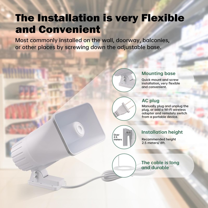 - REMOTELY ACTIVATE OR DISACTIVATE: Utilize a Wi-Fi wireless adapter or smart plug (sold separately) to remotely activate or disactivate your siren from your phone or mobile device