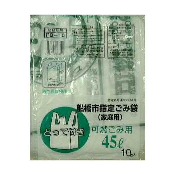 Nippon Giken Industry FB-10 FB-10 Freabashi City Designated Flammable Garbage Bag 45L10P Translucent