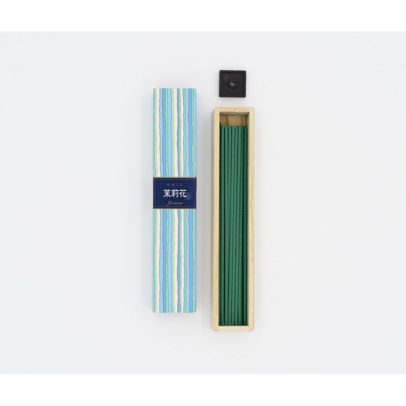 - The beautiful Kayuragi incense box contains 40 incense sticks and a mini ceramic holder. This special fragrance contains the seductive scent of jasmine