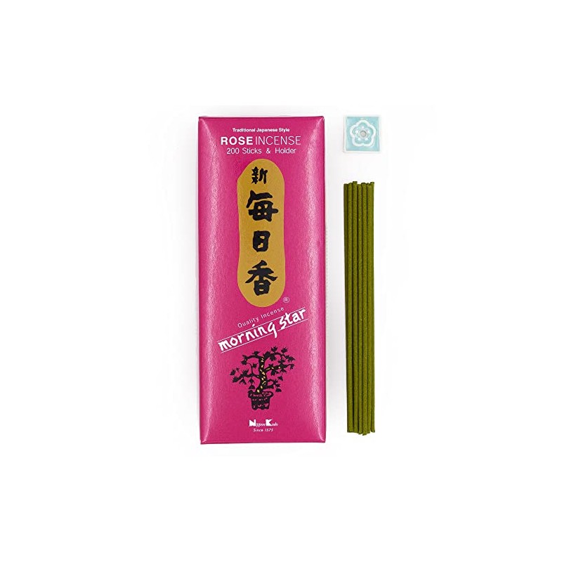 Nippon Kodo Morning Star Rose Japanese Incense - 200 Stick Box with Ceramic Holder