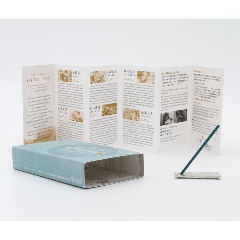 - Its soft floral essence is the perfect accompaniment to a bath, though its pure, clean-burning scent can be used for relaxing anywhere, or even during yoga sessions. It comes with a special incense stick holder made from tin and designed to resemble the pavements in old Edo