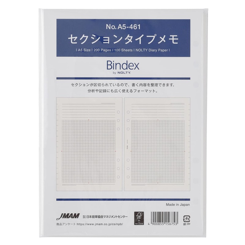 Nippon Performance Association Management Center Noushitsu Organizer, Refill, A5, Section Type Memo, 100 Sheets A5461