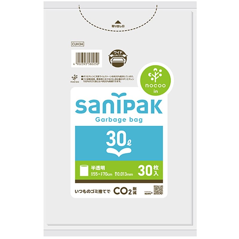 Nippon Sani Pack Nocoo Trash Bags, 1.8 gal (30 L), Translucent, 30 Pieces, 0.013 CUH34