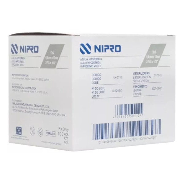 AGUJA HIPODERMICA NIPRO 27G X 13mm