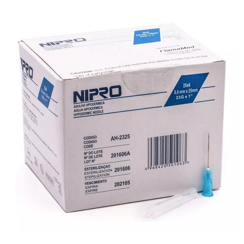Nipro Aguja HiPodérmica Nipro 23gx25 Mm ( 1 ) Azul Caja 100u