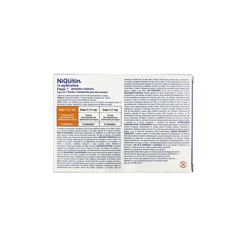 Logra dar el primer paso hacia una vida sin tabaco con Niquitin Etapa 1, un tratamiento con parches transdérmicos de 21 mg de nicotina de liberación controlada, diseñado específicamente para las primeras semanas del programa para dejar de fumar. Este pack de 6 parches ofrece un suministro de 6 días, ideal para comenzar con un apoyo firme y reducir progresivamente la dependencia de la nicotina.