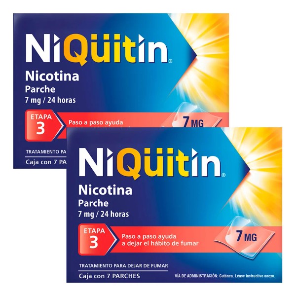 NiQüitin, proporciona una cantidad de nicotina constante durante 24 horas. Este programa de disminución por etapas permite gradualmente suprimir la necesidad de nicotina al cuerpo para dejar este hábito.