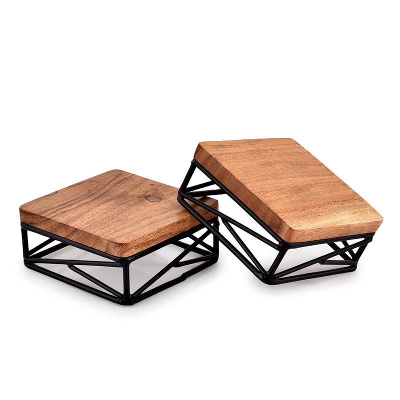 NIRMAN Riser Square Display Wooden Base Stand for Kitchen/Bathroom Counter/Plant Stand Set of 2 ( 4" x 4" x 1.75")