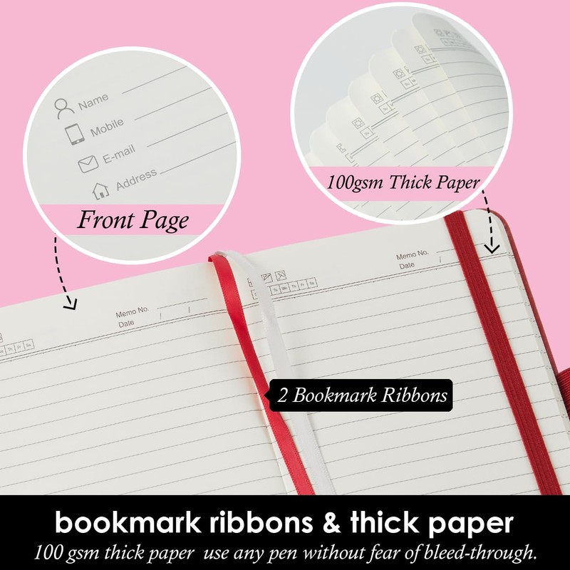 - 【Funktion des Notizbuchs】1. Elastische Stiftschlaufe, doppelt genäht, fällt nicht ab. 2. Elastisches Band an der Rückseite hält das Journal geschlossen. 3. Zwei Lesebändchen können die Position Ihrer Aufzeichnungen markieren.
