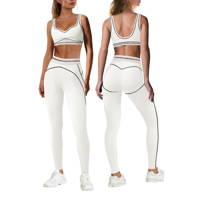 - Vogue Design-our high waist tummy control leggings features contouring contrast stitching with sweetheart shaping in back, easily creating peach buttocks. Flattering and cute sports bra with gently-scooped neck and low back. A must-have workout outfits in any wardrobe. Please pair this butt lifting leggings with seamless underwear in light colors to minimize visibility
