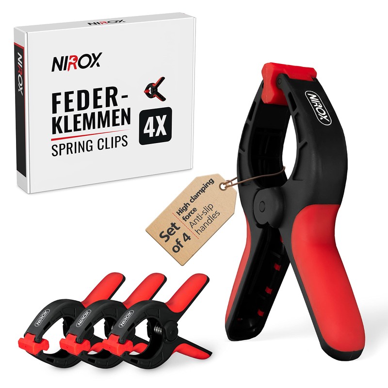 Nirox Set of 4 Spring Clips - Clamps with Large Span Width - High Clamping Force of The Spring clamp - Clamps with moveable Jaws - Tension Clamps