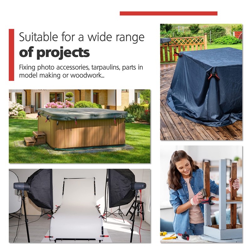 • –– VERSATILE USE –– Ideal for fixing photo accessories, tarpaulins for pools or garden sets, workpieces and parts in model making or woodwork