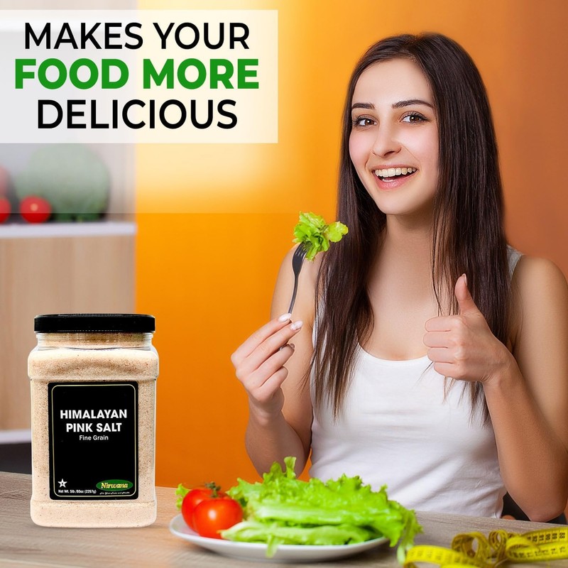 Nirwana Himalaya Pink Salt Fine - Plastic Jar - Sourced From the richest mineral mines in the Himalayan Mountains! – Flaky, & Mineral-Rich – Compatible with Spice Grinders & Salt Shakers 5lb