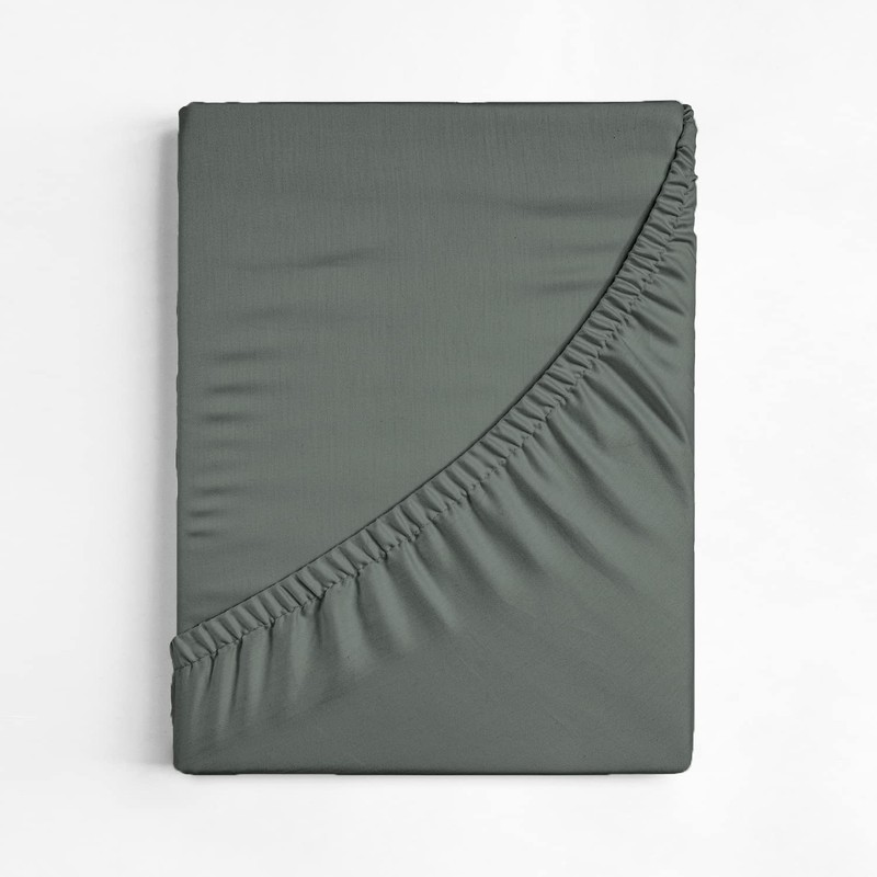 Nisaki Cotton Sateen Single-Fitted-Sheet Dark Grey 1Pc, 100% Long Staple Cotton Single Bed-Sheet, Soft Sateen Weave Luxury Fitted Sheet Single fits Upto 40cm