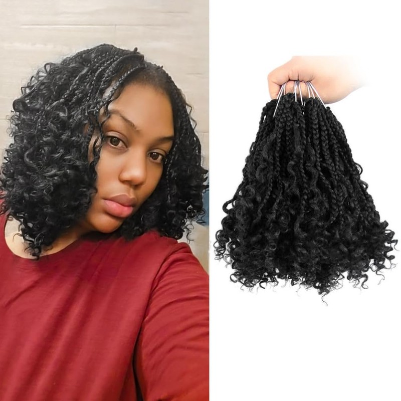 Niseyo Goddess Box Braids Crochet Hair 8 Inch 8 Packs Short Crochet Box Braids Pre Looped Curly Ends Premium Quality Synthetic Hair (1B/Natural Black)