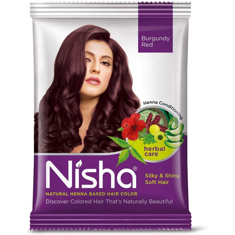 Nisha henna based hair colour is a premium quality powder hair colour enriched with ancient Indian herbs like Amla, Aloe Vera, Hibiscus & Shikakai. It is one of the best hair colour powder available in the market which is made from herbal henna extracts. Nisha is an ammonia free unisex hair colour, which is safe for your hair. Nisha hair color makes your hair soft, glossy & natural looking. Discover Colored Hair That’s Naturally Beautiful with Nisha Powder Hair color.