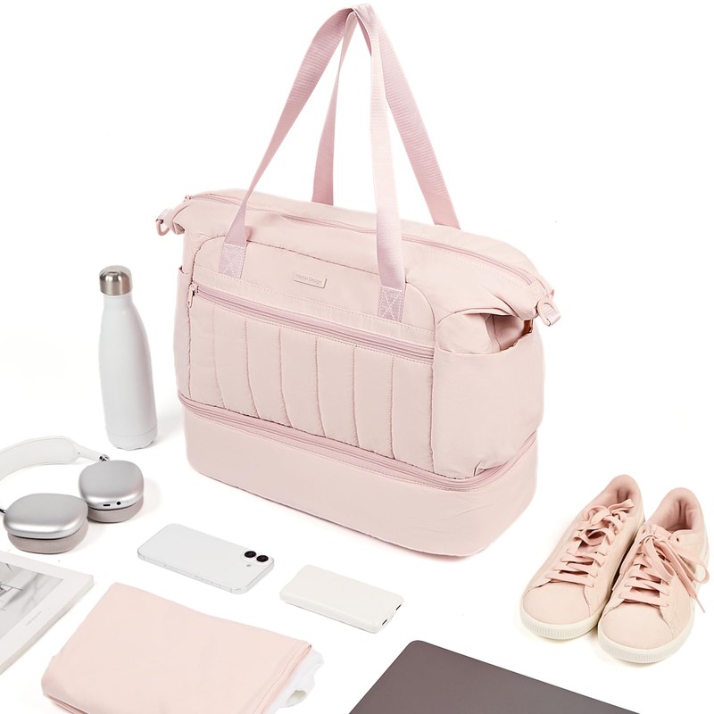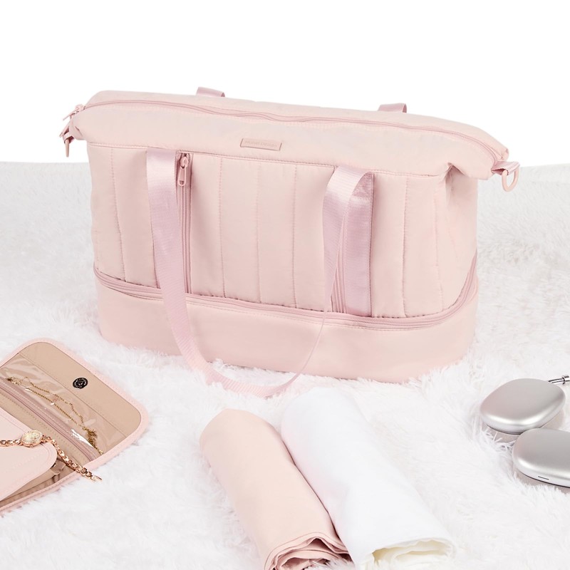 NISHEL Women's 2-in-1 Weekender Duffle Bag, Large Capacity Duffle Bag with Multi-Pocket, Overnight Tote for Travel, Carry On Personal Item, Pink