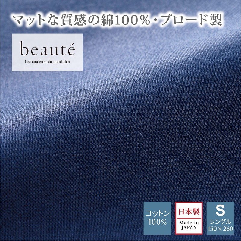 Nishikawa PK03401005 Flat Sheet, Single, Washable, Skin-friendly, 100% Cotton, Broad Fabric, Solid, Beaute BE3601, Navy