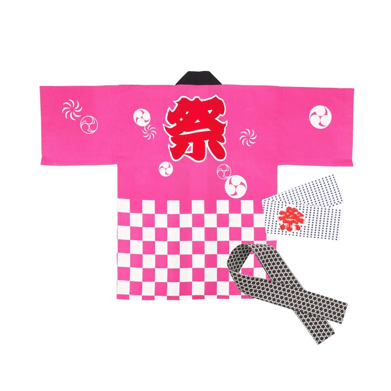 Nishiki Festival Happi 3-Piece Set, 100% Cotton, Waist Strap, Tenugui, Unisex, Festivals, Events, Yosakoi, 4 Sizes to Choose from, Pink