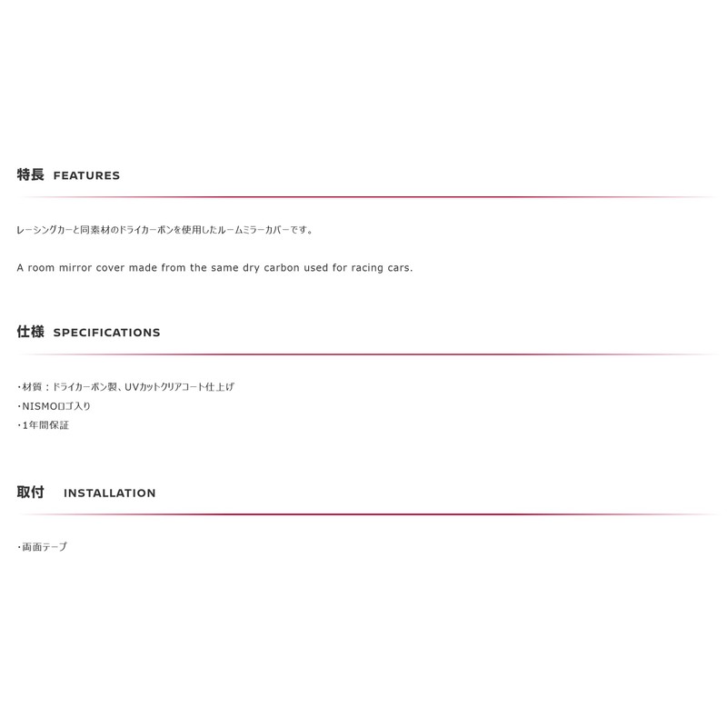 - Product Specifications: For cars with harness; Material: Dry carbon, UV protection clear coat finish; NISMO logo included