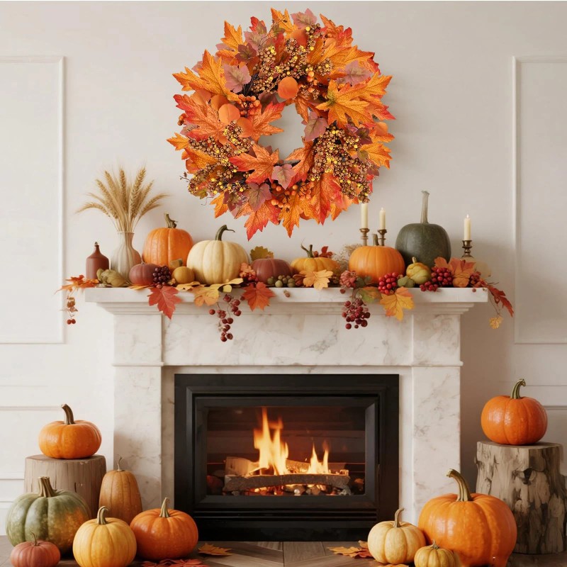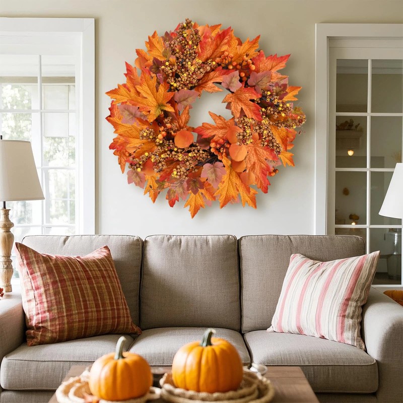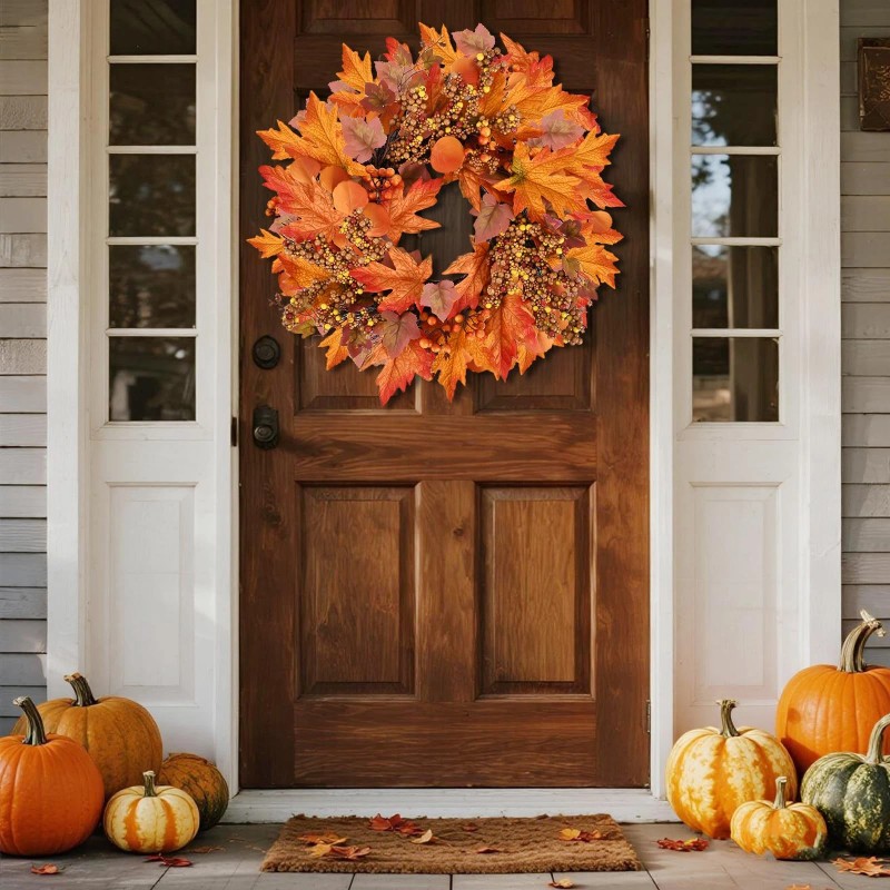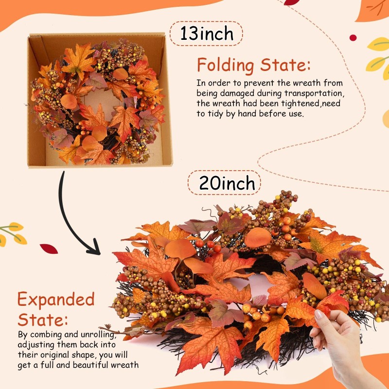 Nisoger 20 lnch Artificial Fall Wreath for Front Door Autumn with Maple Leaves