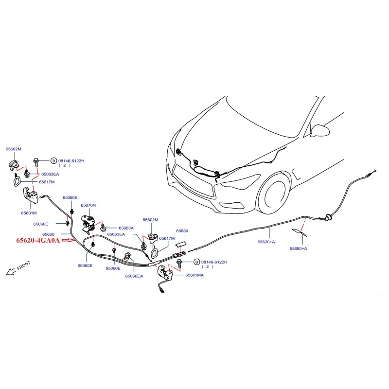 Nissan NEW OEM INFINITI Q50 /Q60 Hood Latch Lock Control Release Cable 65620-4GA0A