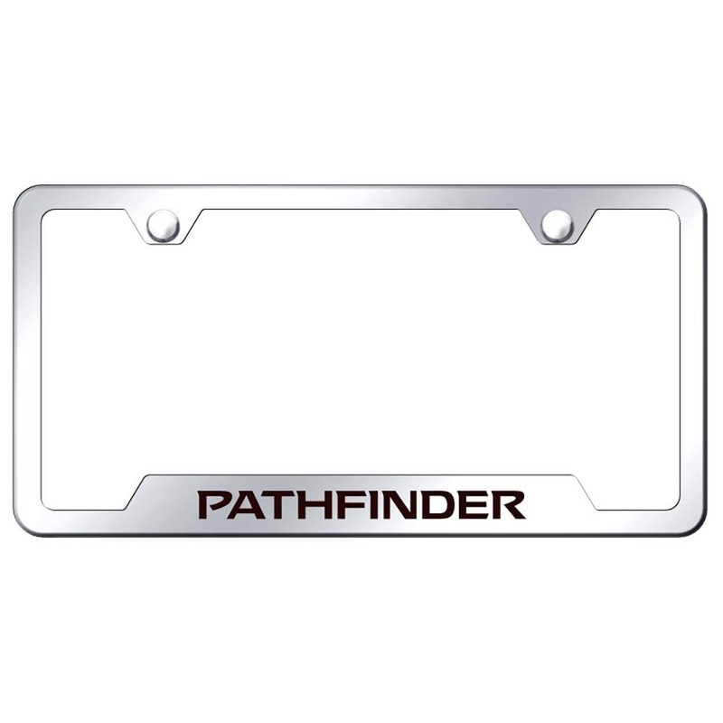 - This one stylish license frame features a laser cut Nissan Pathfinder nameplate.