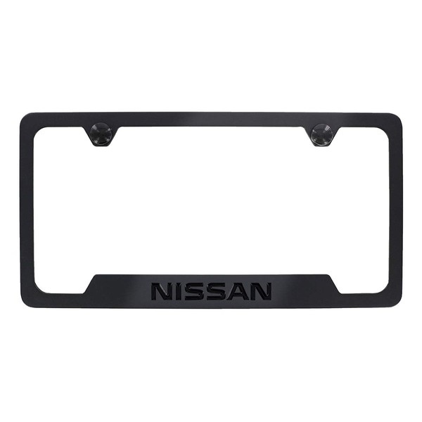 Nissan Wordmark Black on Black Metal License Plate Frame Holder 2 Hole