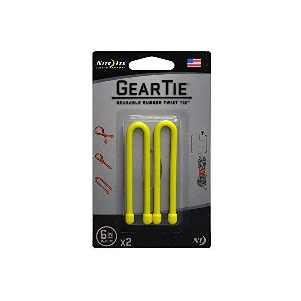 Nite Ize Gear Tie 6" Neon Yellow Reusable Rubber Twisty Ties (4-Pack of 2)