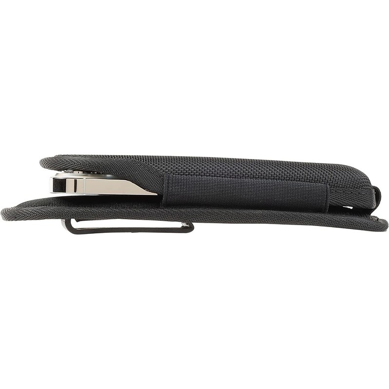 Size: XL. Universal Quickslide holster allows for easy phone access. Fits 7" x 3". Rugged fixed position clip. Internal pocket holds credit cards and more. Expandable design fits phone with or without case. Hang packaged.