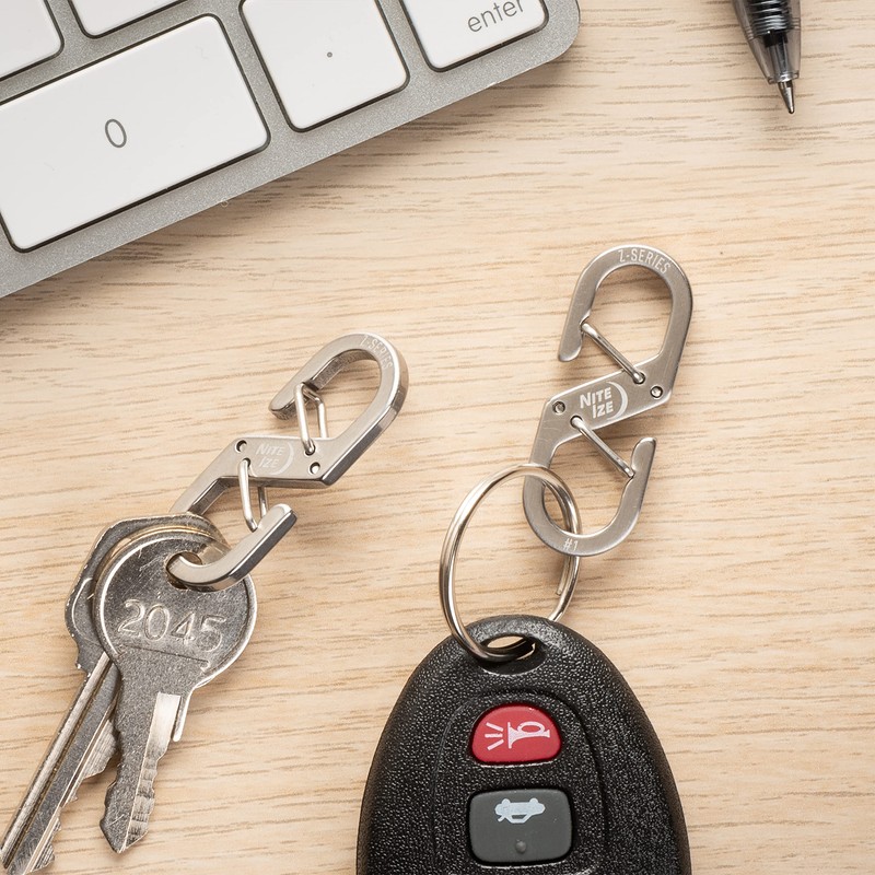 - DUAL GATES FOR DUAL UTILITY - This "Z" shaped stainless steel carabiner features two gates, allowing you to clip keys and items to one side, then clip the other to a backpack, belt loop or pocket