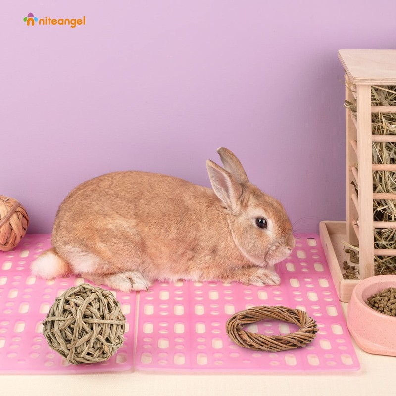 Niteangel 2 Pieces Rabbit Playpen Feet Mats for Cage, Comes with 4 Fixed Tabs (Pink)