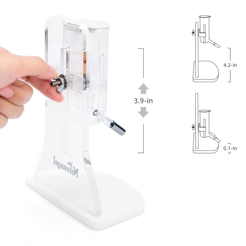 - Adjustable Height & Capacity Marker: The base of water bottle holder offers you an opportunity to place your hamster water dispenser whereas you wish. It can be lowered or raised to suit a variety of pet sizes and heights. Let the small animal keep a natural posture when drinking water and ensure more comfortable drinking water, what's more, the large capacity of 80ml lets you track how much your hammy drinks every day.