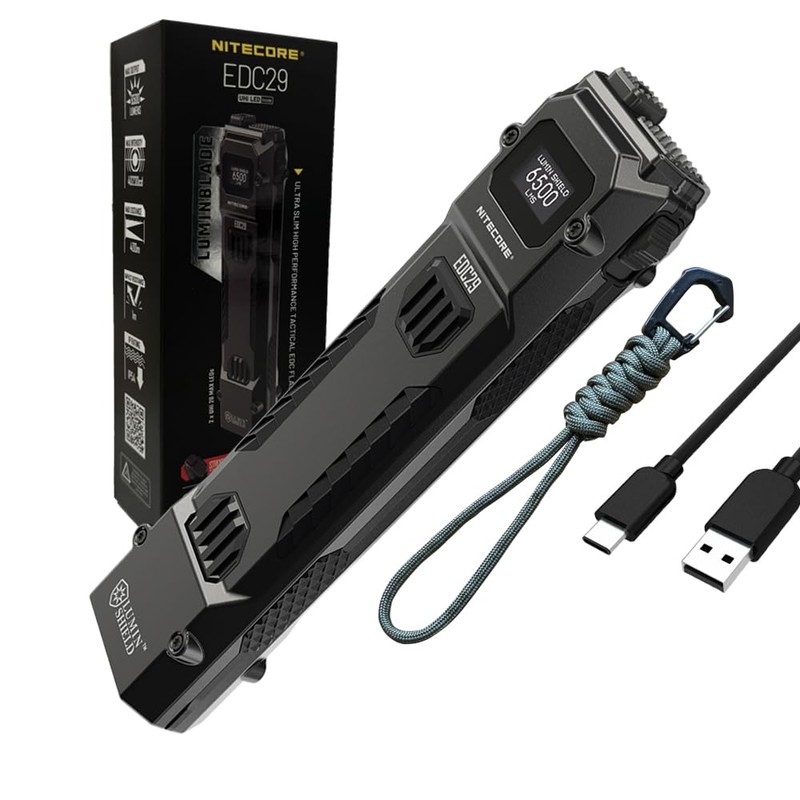 Nitecore EDC29-6500 Lumen Every Day Carry Rechargeable Flashlight with Eco-Sensa USB-C Charging Cable
