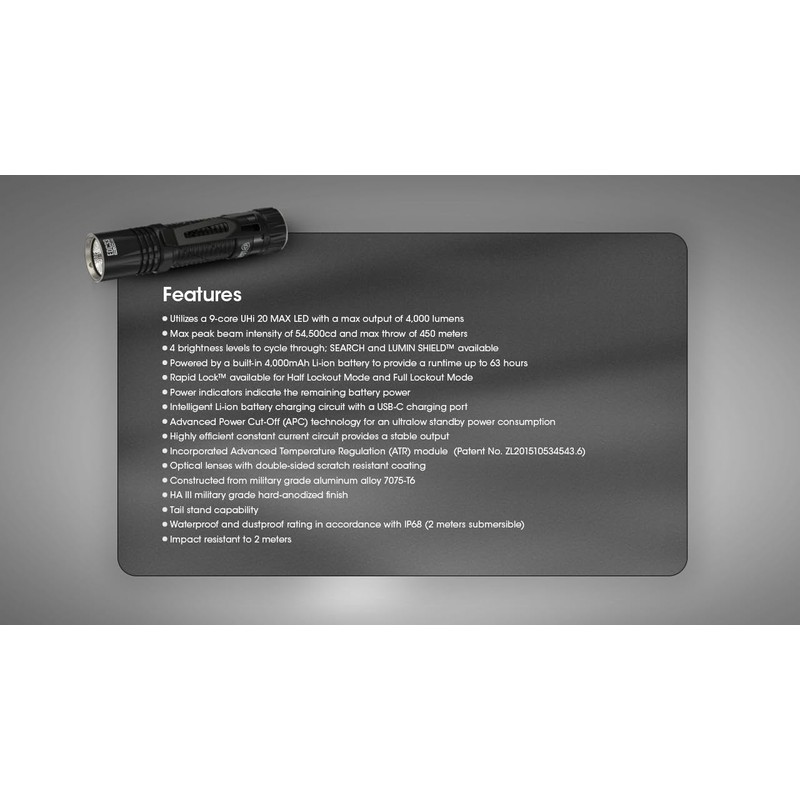 Nitecore EDC33 4000 Lumen Rechargeable EDC Flashlight w/Nitecore Bubble All-p...