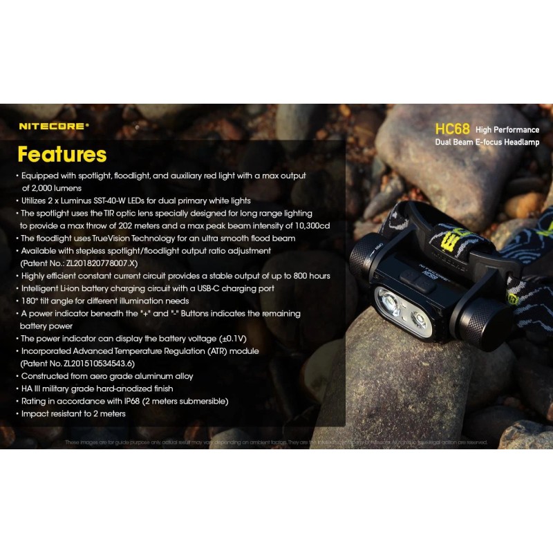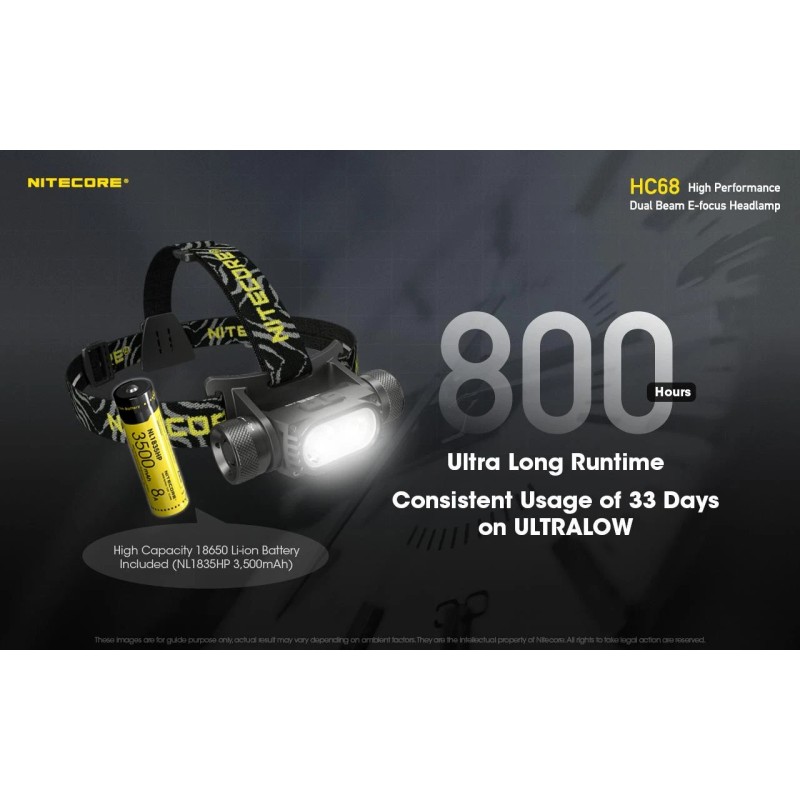 NITECORE HC68 High Performance Dual Beam E-focus Headlamp- 2000 Lumens w/ MH10 V