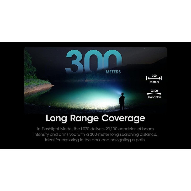 - Max Beam Intensity: 23,100cd (Flashlight Mode); 70cd (Lantern Mode)