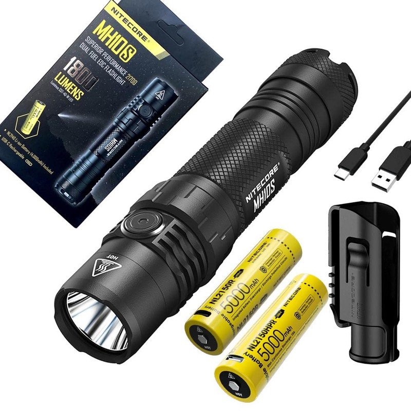 Nitecore MH10S Luminus SST-40-W USB-C Rechargeable Flashlight - 1800 Lumens w/EXTRA NL2150HPR Battery