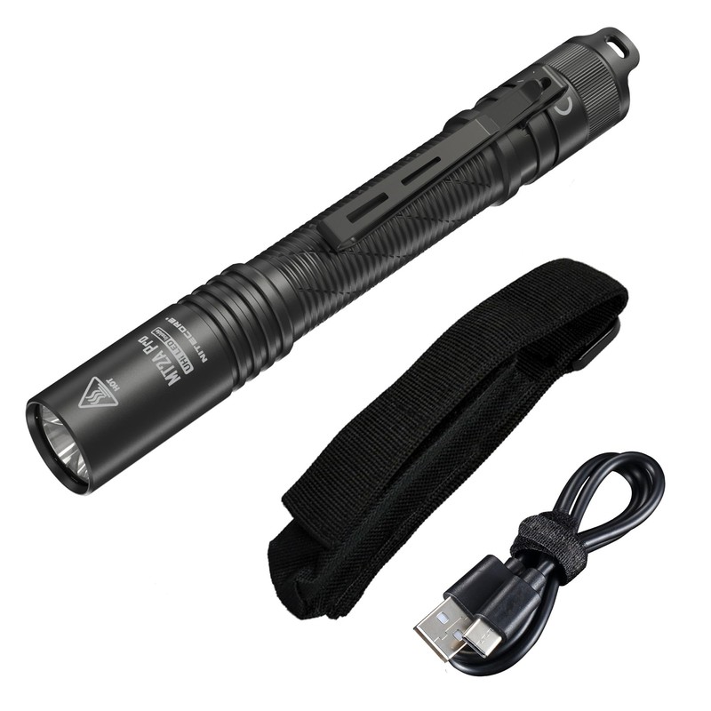- INCLUDES: Nitecore MT2A Pro with USB-C rechargeable NL1416R battery pre-installed, USB-C charging cable, lanyard and a pocket clip (packed inside an accessory bag), and a carrying holster from NitecoreStore.