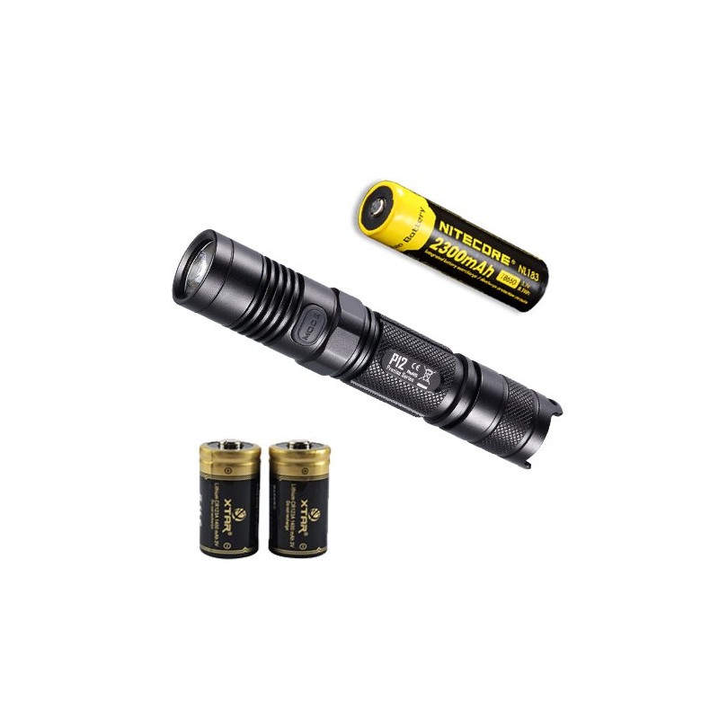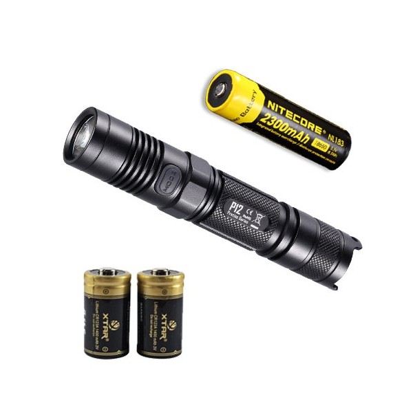 Nitecore P12 2015 Edition LED Flashlight w/ NL183 Battery & 2 Premium CR123A Batteries