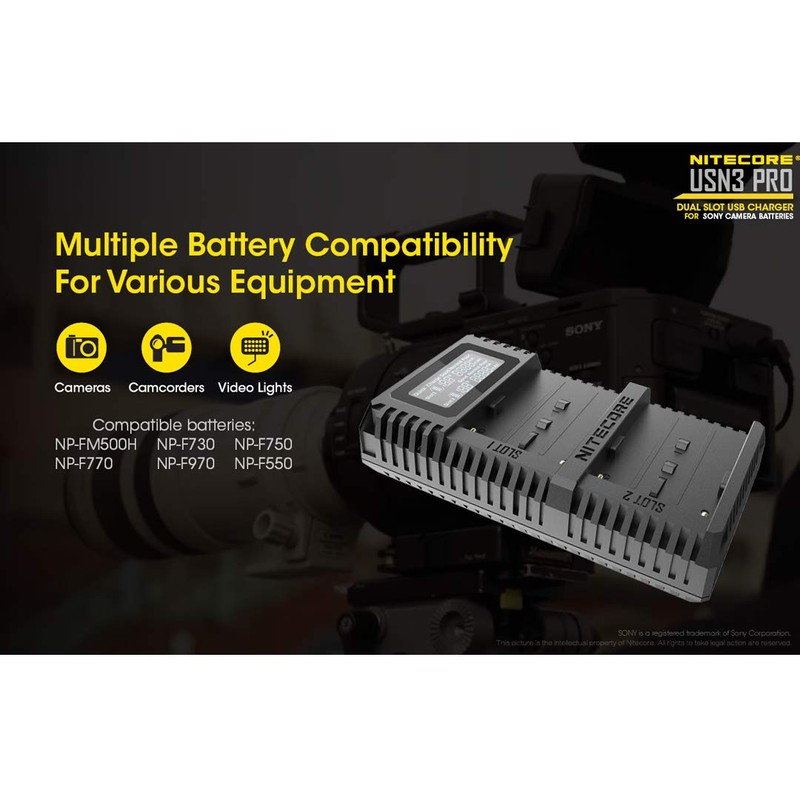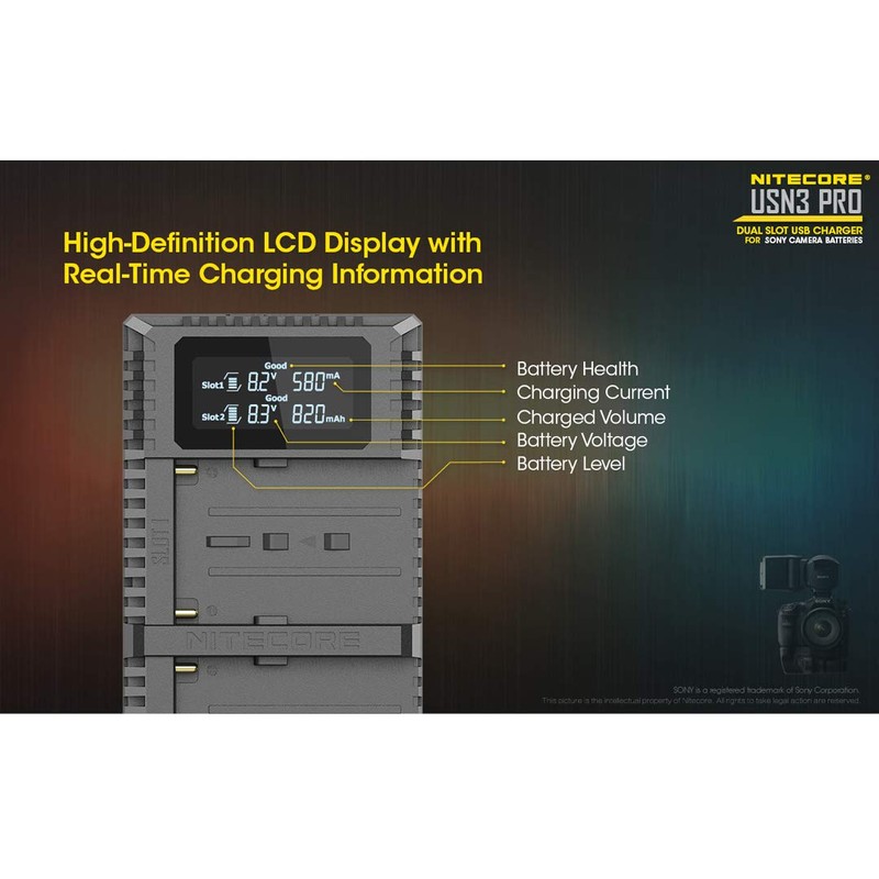 Nitecore USN3 Pro Dubbel Lader voor Sony NP F Serie Schwarz