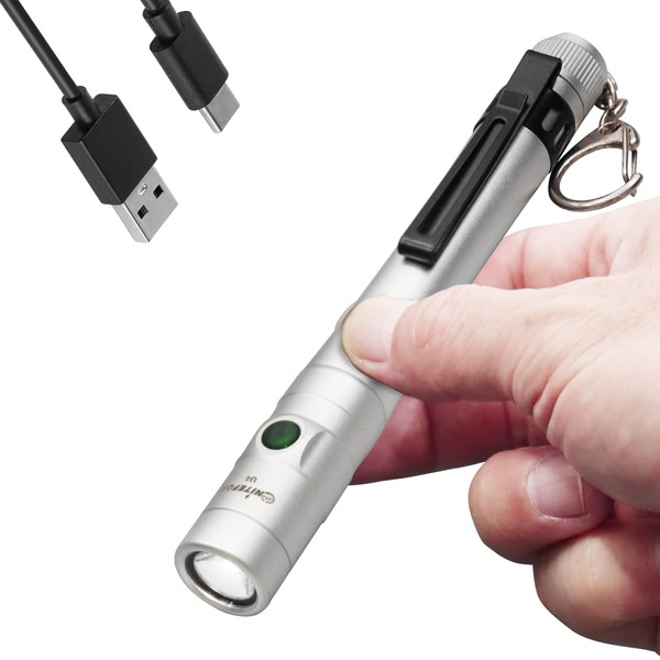 Nitefox Pen Light Flashlight Rechargeable - Mini EDC Pocket Flashlight 300 Lumens with Clip and Diffuser, Aluminum Alloy Pen Torch in Gift Box for Work, Inspection, Emergency Use(Silver)