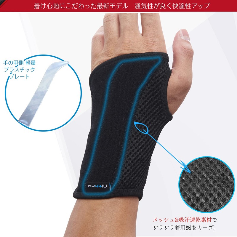 Nithra 手首サポーター 手首固定 手首 保護 家事 育児 スポーツ 右手/左手 S/M L/XL (L/XL-右手)