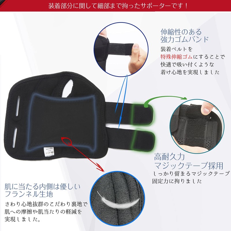 - 高い固定力・圧迫力で手首を強力サポート。内蔵のプレートが手首をガッチリホールドし、ベルトを伸縮ゴムにすることで吸い付くようなつけ心地の抜群なフィット感を実現。