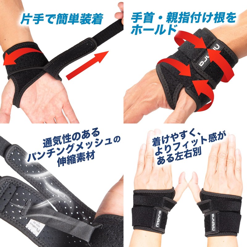 - Nithra Wrist Taping Supporter aims to provide firm support for the wrist and the base of the thumb. Specially designed to cover the base of the thumb, it is easy to put on while providing outstanding hold. It is highly reliable and recommended by the chief of the Hospital of the Needles Moxibustion